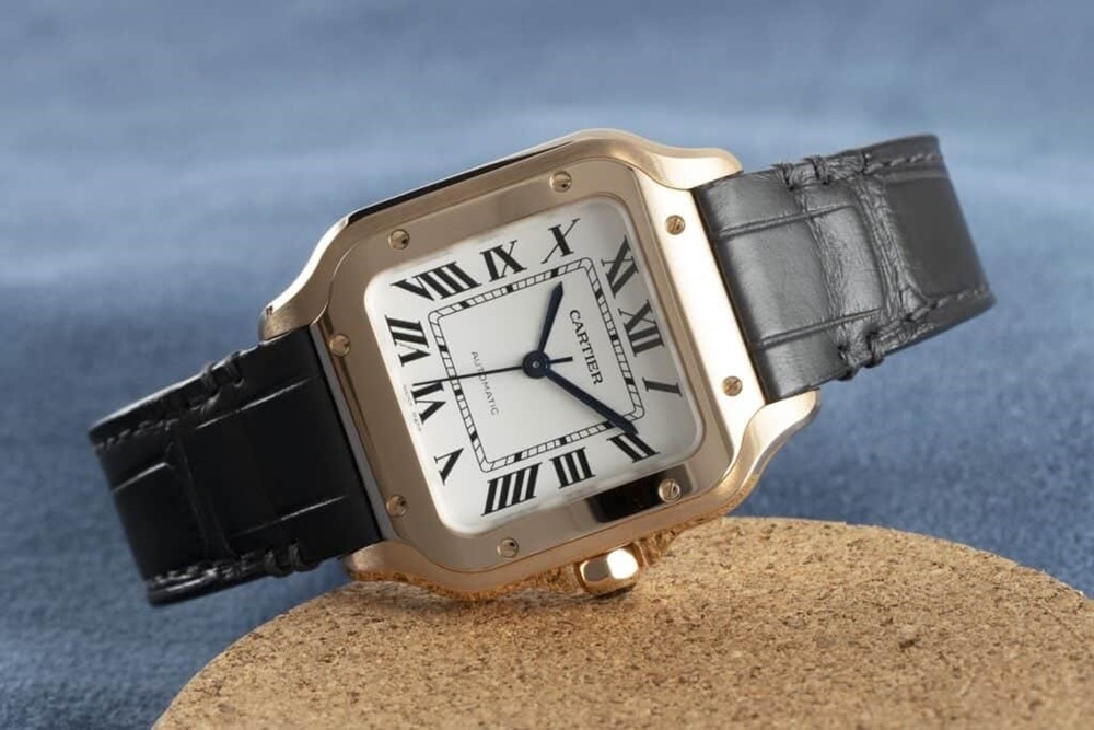 In 1904, Santos-Dumont went to his friend, Louis Cartier, and complained about the impracticalities of using pocket watches in flight. This inspired Louis Cartier to create a timepiece his friend could wear on his wrist. Cartier designed a flat wristwatch with a square case and bezel.