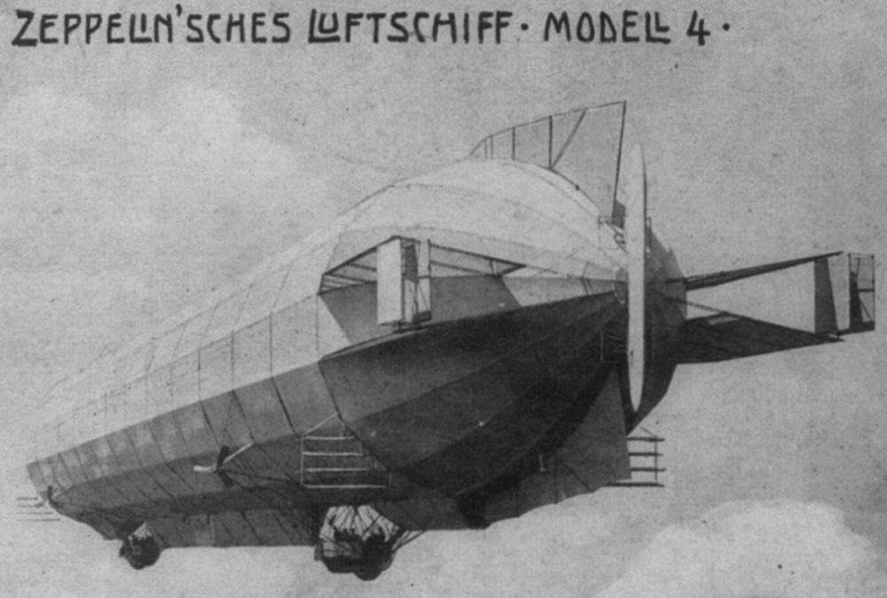 In Germany, Ferdinand, Graf von Zeppelin, a retired German army officer, developed a cigar-shaped airship, which and made its initial flight from a floating hangar on Lake Constance, near Friedrichshafen, Germany, on July 2, 1900. Beneath the 128-metre (420-foot) craft a keel-like structure connected two external cars, each of which contained a 16-horsepower engine geared to two propellers. A sliding weight secured to the keel afforded vertical control by raising or lowering the nose, while rudders were provided for horizontal control.