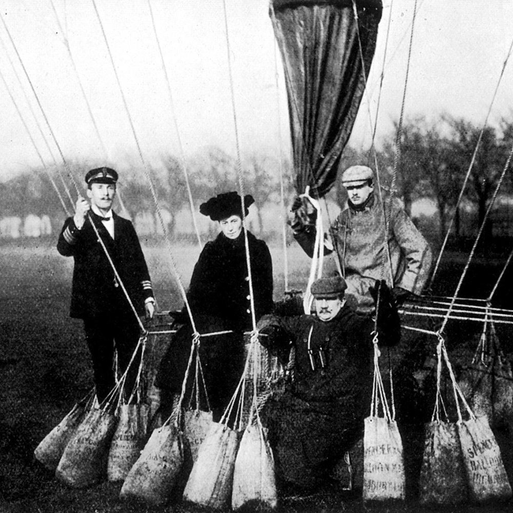 The balloon flight that gave birth to the Aero Club of Great Britain on the 24th September 1901. Seated is Frank Hedges Butler with his daughter, Vera, centre and Charles Rolls top right.