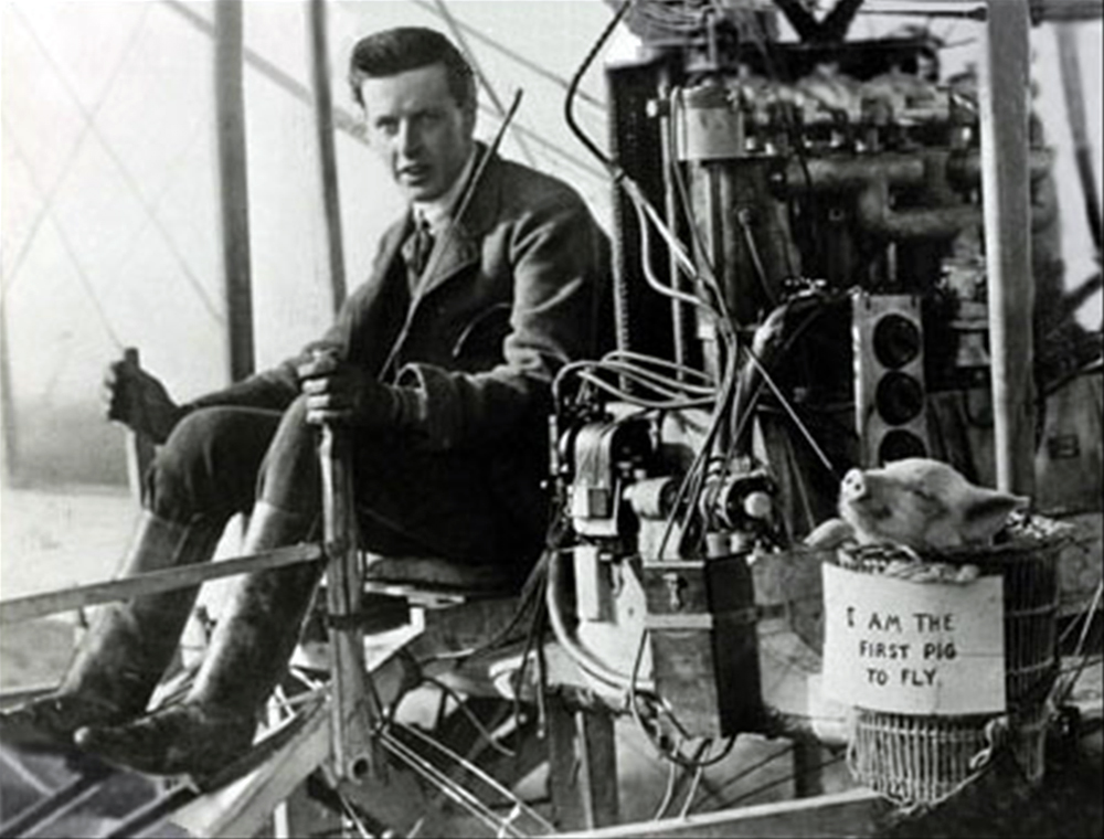 On 4 November 1909, he took up a piglet as a passenger, disproving the adage that “pigs can’t fly”.